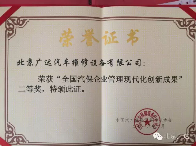 會議期間,還公布了全國汽保企業(yè)管理現(xiàn)代化創(chuàng)新成果的評選結(jié)果,北京廣達時刻緊跟市場大環(huán)境的發(fā)展,從內(nèi)部管理到對外銷售、服務(wù)等方面開展了一系列的自我創(chuàng)新轉(zhuǎn)型,并在此次評選中榮獲二等獎。